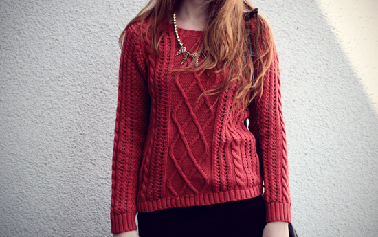 der Pulli ist ja mal schön! ich mag die Farbe total!:) Koralle oder?! und die kette ist auch wunderschön:)